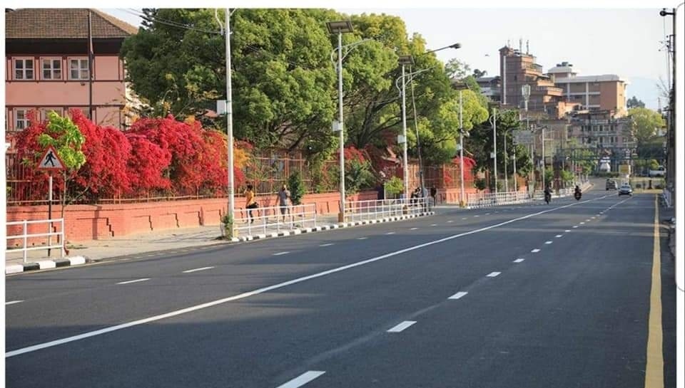 काठमाडौँ, चैत ३० गते । कोरोना भाइरस (कोभिड–१९)का कारण बन्दाबन्दी (लकडाउन) गरिएपछि जनजीवनमा असजिलो भए पनि कतिपय कामलाई भने सहज भएको छ । काठमाडौँ उपत्यकामा कालोपत्रे (ओभर–ले) गरिएका सडकमा ट्राफिक चिह्न निर्माण तथा रङरोगनका लागि भने अहिले सहज भएको छ ।