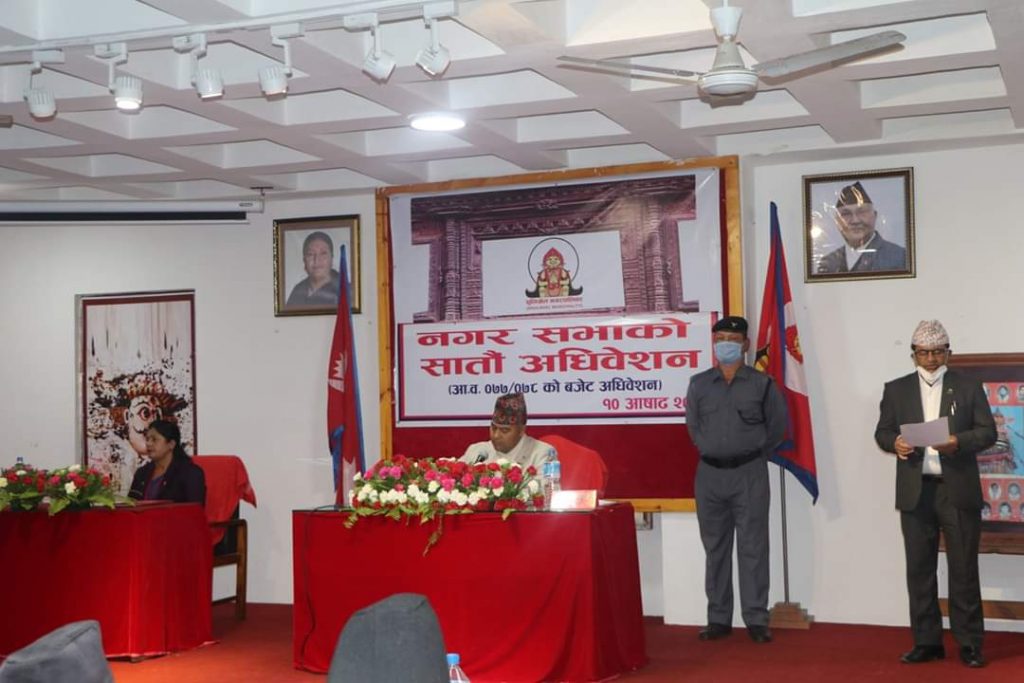 सभामा आव २०७५/२०७६ को यथार्थ तथा २०७६/२०७७ को शंशोधित स्थिती समिक्षा प्रगति प्रतिवेदन र धुलिखेल नगरपालिकाको आर्थिक वर्ष २०७७÷२०७८ को आर्थिक विधेयक, विनियोजन विधेयक उपप्रमुख विमला शर्मा चौलागाईले प्रस्तुत गर्नु भएको थियो भने बार्षिक नीति तथा कार्यक्रम र बजेट नगर प्रमुख अशोक ब्याञ्जुले प्रस्तुत गर्नु भएको थियो ।
