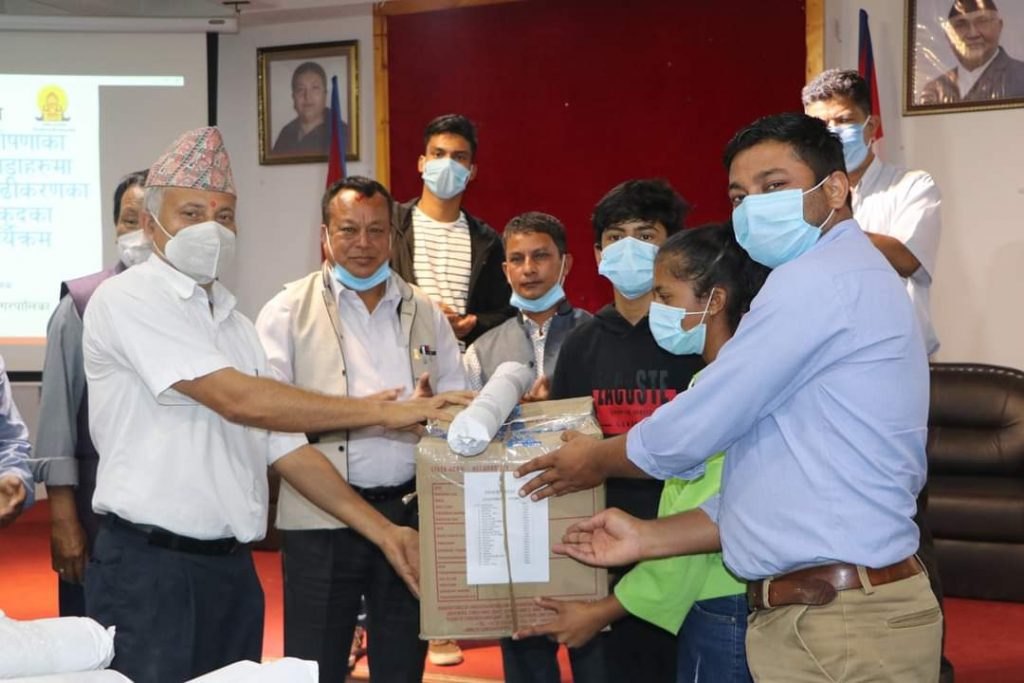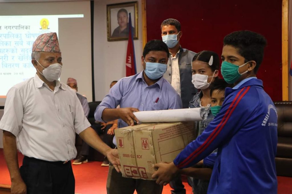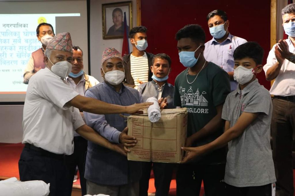धुलिखेल नगरपालिकाको ५५ वटा बालक्लबहरुलाई खेलकुदको सामाग्री हस्तान्तरण